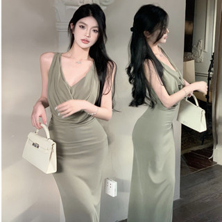 Đầm Dự Tiệc Ôm Dáng Eo Cao Hở Eo Xếp Ly Quyến Rũ Phiên Bản Hàn Quốc Cho Nữ