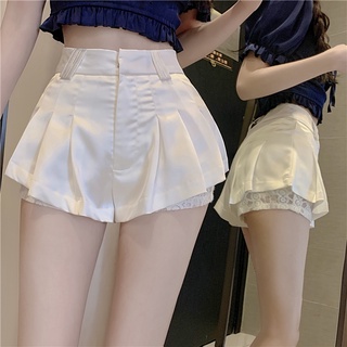 Quần Culottes Lưng Cao Viền Ren Bằng Lụa Phong Cách Hàn Quốc Kiểu Mới
