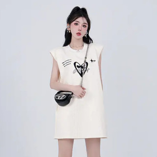 Đầm Dệt Kim Sát Nách Cổ Tròn Dáng Rộng In Chữ Thời Trang Hàn Quốc