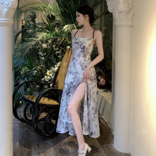 Đầm Hai Dây Dáng Dài Họa Tiết Hoa Phong Cách Hàn Quốc Thời Trang Quyến Rũ Cho Nữ