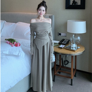 Đầm Ôm Trễ Vai Tay Dài Màu Đen Phong Cách Hàn Quốc Quyến Rũ Dành Cho Nữ