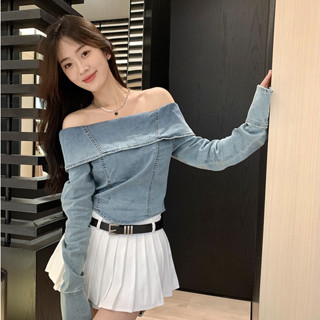 Set Áo Ống Denim Ngắn Ôm Dáng + Chân Váy Xếp Ly Lưng Cao Mini Thời Trang Hàn Quốc Quyến Rũ Cho Nữ