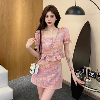 Set Chân Váy Voan Lưng Cao Và Áo Tay Ngắn Cổ Chữ V Thời Trang Phong Cách Hàn Quốc Cho Nữ