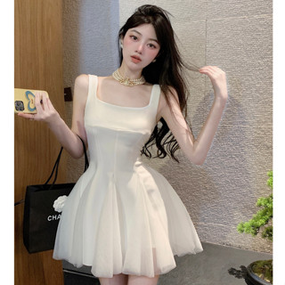 Đầm Dáng Chữ A Không Tay Ôm Eo Đính Kim Cương Màu Trắng Phong Cách Hàn Quốc Cao Cấp