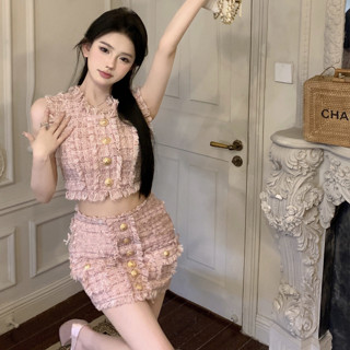 Bộ Áo Dệt Kim Sát Nách Cổ Tròn Dáng Ôm + Chân Váy Ngắn Lưng Cao Thời Trang Hàn Quốc Cho Nữ