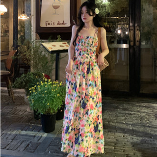Đầm Dài Hai Dây Dáng Ôm In Họa Tiết Hoa Phong Cách Hàn Quốc Thời Trang Quyến Rũ Cho Nữ