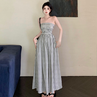 Đầm Sát Nách Dáng Ôm Eo Cao Xẻ Tà Họa Tiết Kẻ Sọc Thời Trang Hàn Quốc Cho Nữ