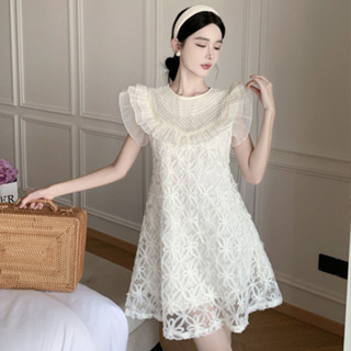 Đầm Chiffon Tay Ngắn Cổ Tròn Phối Ren Dáng Rộng Thời Trang Hàn Quốc Cho Nữ