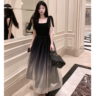 Đầm Dài Không Tay Dáng Ôm Eo Vừa Vặn Màu Đen Gradient Phong Cách Hàn Quốc Gợi Cảm Dành Cho Bạn Nữ