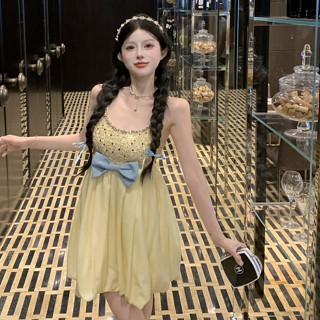 Đầm Hai Dây Thắt Nơ Eo Mỏng Vừa Vặn Đính Đá Lấp Lánh Phiên Bản Hàn Quốc Quyến Rũ Cho Nữ