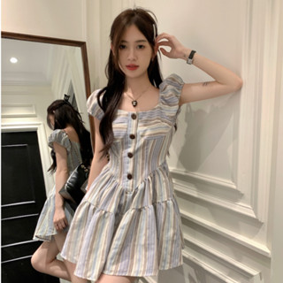 Đầm Dáng Chữ A Ôm Eo Họa Tiết Kẻ Sọc Nhiều Màu Sắc Phong Cách Hàn Quốc Quyến Rũ Dành Cho Nữ