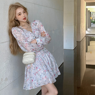 Set Áo Thun Tay Dài Chống Nắng Ôm Dáng + Đầm Hai Dây Họa Tiết Hoa Thời Trang Phong Cách Hàn Quốc Cho Nữ