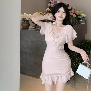 Đầm Cổ Chữ V Eo Cao Ôm Dáng Phong Cách Hàn Quốc Thời Trang Cho Nữ