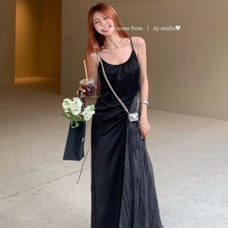 Đầm Voan Hai Dây Dáng Chữ A Màu Đen Đính Đá Phong Cách Hàn Quốc Quyến Rũ Dành Cho Nữ