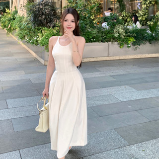 Đầm Dài Hai Dây Cổ Tròn Ôm Dáng Màu Sắc Trơn Phong Cách Hàn Quốc Quyến Rũ Dành Cho Nữ