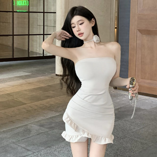 Đầm Dài Mỏng Vừa Vặn Hở Vai Xếp Ly Tay Lửng Thiết Kế Dây Đeo Vai Xếp Ly Gợi Cảm Phiên Bản Hàn Quốc Cho Nữ