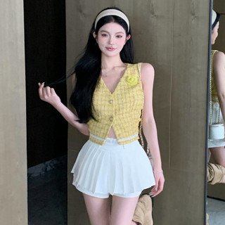 Bộ Áo Hai Dây + Chân Váy Xếp Ly Lưng Cao Thời Trang Hàn Quốc Quyến Rũ Cho Nữ