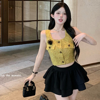 Bộ Áo Không Tay Đính Đá + Chân Váy Chữ A Lưng Cao Thời Trang Dành Cho Nữ