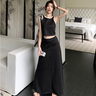 Bộ Áo Thun Không Tay Ôm Dáng + Chân Váy Chữ A Lưng Cao Thời Trang Hàn Quốc Quyến Rũ Cho Nữ