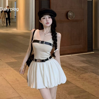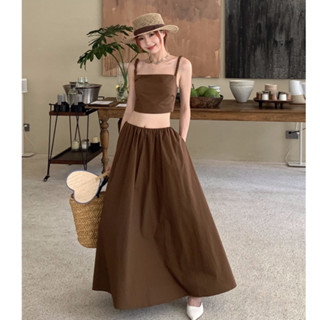 Bộ Áo Hai Dây Ôm Dáng + Chân Váy Chữ A Lưng Cao Thời Trang Phong Cách Hàn Quốc Quyến Rũ Cho Nữ