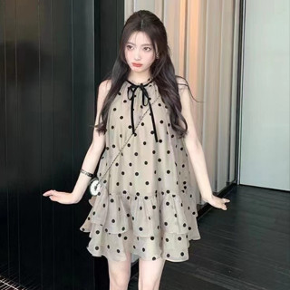 Đầm Chiffon Chữ A Sát Nách Dáng Rộng Họa Tiết Chấm Bi Phong Cách Hàn Quốc Cho Nữ