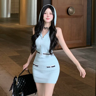 Set Áo Hai Dây Dệt Kim Co Giãn + Chân Váy Eo Cao Thời Trang Nữ