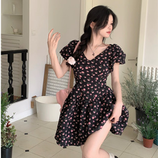 Đầm Voan Hoa Ngắn Tay Ôm Dáng Thời Trang Hàn Quốc Dành Cho Nữ