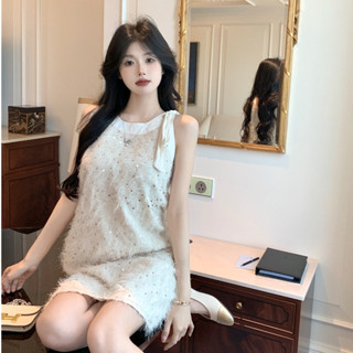 Đầm Không Tay Dáng Ôm Đính Nơ Phối Tua Rua Và Kim Sa Lấp Lánh Thời Trang Hàn Quốc Cho Nữ