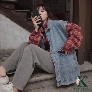Áo khoác jean nữ màu xanh sát nách phom rộng phong cách retro sành điệu cá tính năng động Ulzzang Hàn Quốc chất đẹp