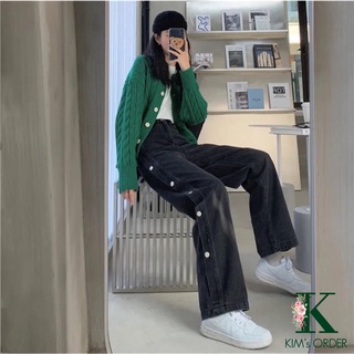Quần Jean Nam Nữ Unisex Màu Đen Ống Suông Phối Hàng Cúc Phom Rộng Lưng Cao Phong Cách Ulzzang Bụi Đường Phố Cá Tính