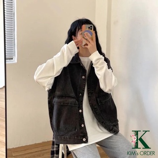 Áo khoác gile bò nữ màu đen chất liệu jean co dãn phom dáng rộng phong cách đường phố cá tính Hàn Quốc