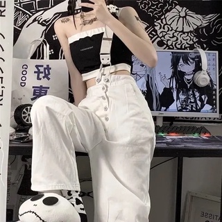 Quần Jeans Yếm Nữ Màu Trắng Đen Ống Suông Baggy Có Dây Điều Chỉnh Chất Jean Năng Động Cá Tính Phong Cách Ulzzang
