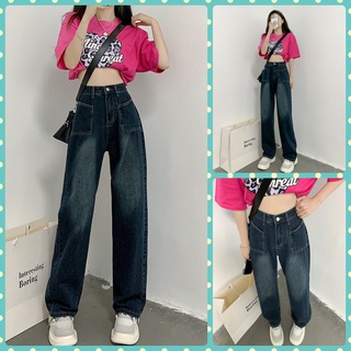 Quần Yếm Jean Nữ Màu Xanh Đậm Ống Suông Rộng Dài, Yếm Bò Basic Phong Cách Ulzzang Vintage, Bigsize Loại 1 Quảng Châu