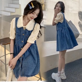 Váy Yếm Bò Denim, Đầm Jean Dáng Baby Doll Không Tay Sát Nách Phong Cách Tiểu Thư Hàn Quốc Cài Cúc Cổ V loại 1 Năng Động