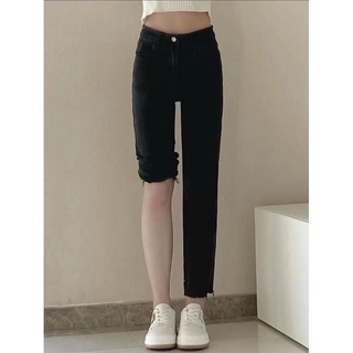 Quần Jean Ống Đứng 9 Tấc Màu Đen Cạp Cao Phong Cách Ulzzang Mặc Hàng Ngày Đi Học Đi Làm Đi Chơi Năng Động Hách Dáng