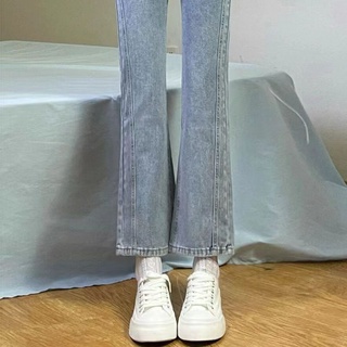 Quần Denim Lưng Cao Ống Rộng Thời Trang Dành Cho Nữ Quần Ống Loe Gân Màu Xanh Nhạt Thời Trang Cạp Cao Phong Cách