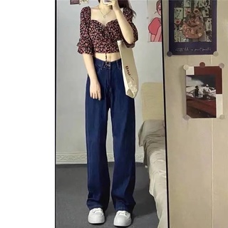 Quần Jean Ống Suông Nữ Màu Xanh Than, Quần Bò Ống Đứng Dài Cạp Cao Phong Cách Ulzzang Hàn Quốc Loại 1 Chất Co Dãn