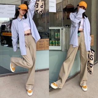 Quần jean nữ màu xanh nhạt ống suông cạp khuy gài điều chỉnh eo lưng cao phom rộng Ulzzang Hàn Quốc loại đẹp hách dáng