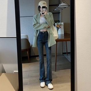 Quần Jeans Nữ Ống Loe Màu Xanh Nhạt Đậm Chất Co Dãn Có Túi Cạp Cao Cá Tính Sành Điệu Phong Cách Hàn Quốc Loại 1