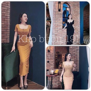 Đầm Body Nữ - Váy Cổ Vuông Tay Ngắn Phối Cúc Ngực Sexy - VN01
