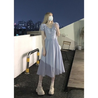 Đầm Dáng Chữ A Tay Phồng Lưng Cao Thiết Kế Đơn Giản Thời Trang Pháp Cho Nữ