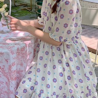 Đầm Hoa Tay Phồng Cổ Búp Bê Dáng Rộng Phong Cách Nhật Bản Thời Trang Mùa Hè Dành Cho Nữ 2021
