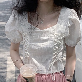 Áo Sơ Mi Trắng Cổ Vuông Tay Phồng Phong Cách Pháp Ngọt Ngào Thời Trang Mùa Hè Cho Nữ