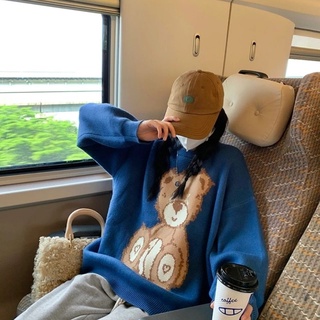 Áo sweater dáng rộng in hình gấu Klein dễ thương thời trang mùa thu mới 2021