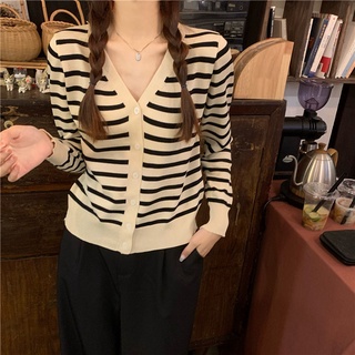 Áo Khoác Cardigan Dệt Kim Cổ Chữ V Dáng Rộng Kẻ Sọc Thời Trang Mùa Thu Dành Cho Nữ
