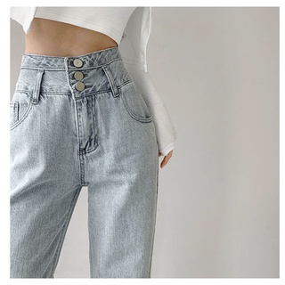 Quần jean lưng cao ống rộng phối nút đơn giản thời trang mùa hè dành cho nữ