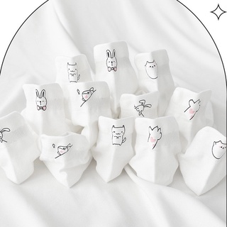 Tất cổ thấp trắng họa tiết hình thú đơn giản phong cách Hàn quốc - T13