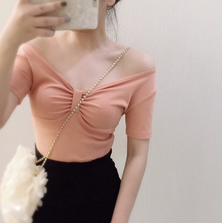 Áo Ngắn Tay Thắt Nơ Ngực Gợi Cảm Mùa Hè Cho Nữ