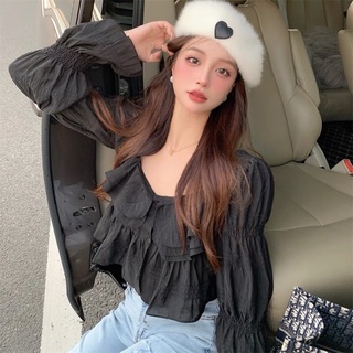 Set váy bèo dây rút ngực tay dài kèm chân váy bèo rút dây màu đen alohashop91