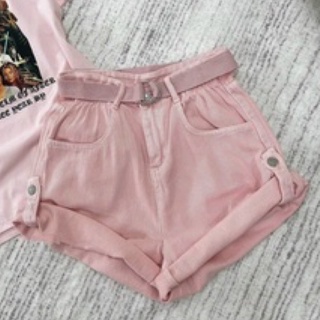 Quần short jean bẻ lai, Quần short jean nữ gấu gập màu hồng xinh Ly alohashop91
